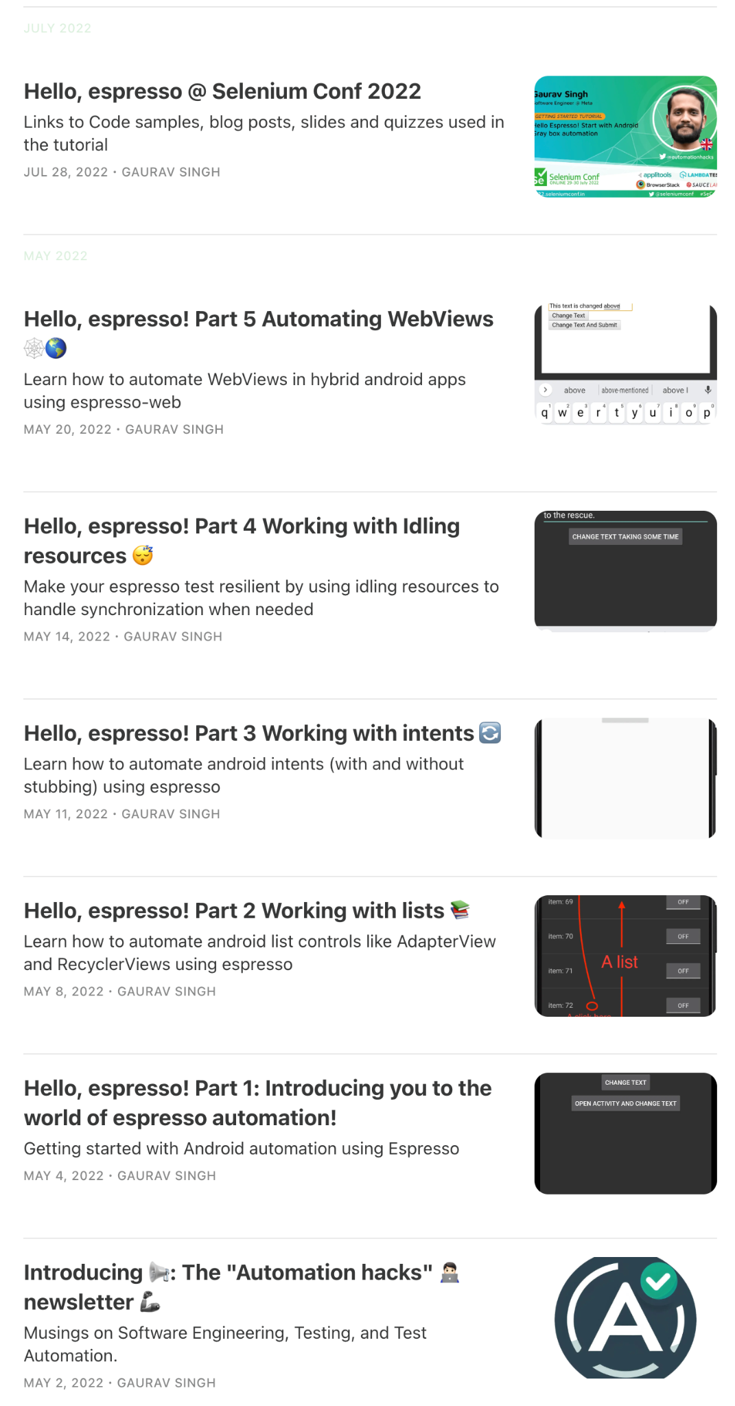 I first wrote a series of newsletter posts on Android espresso as I was learning about the topic myself.