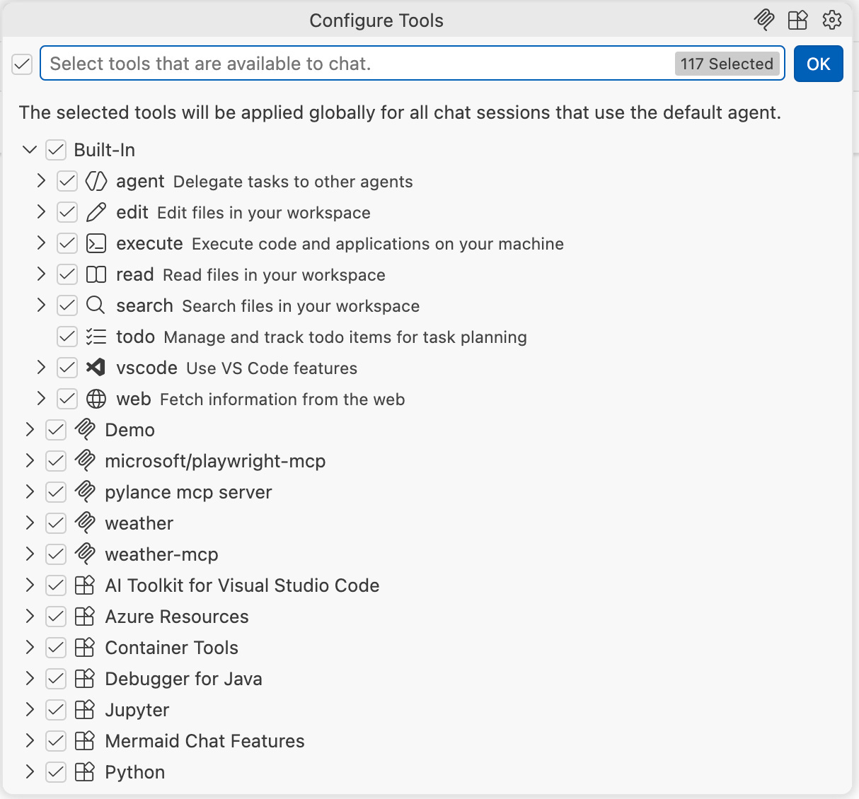 Extension tools – Within VS code’s context, you get a bunch of tools when you install an extension, you can also use language model tools API to provide functionality while accessing the full range of VS code extension APIs. If curious, you can read Language Model Tool API | Visual Studio Code Extension API